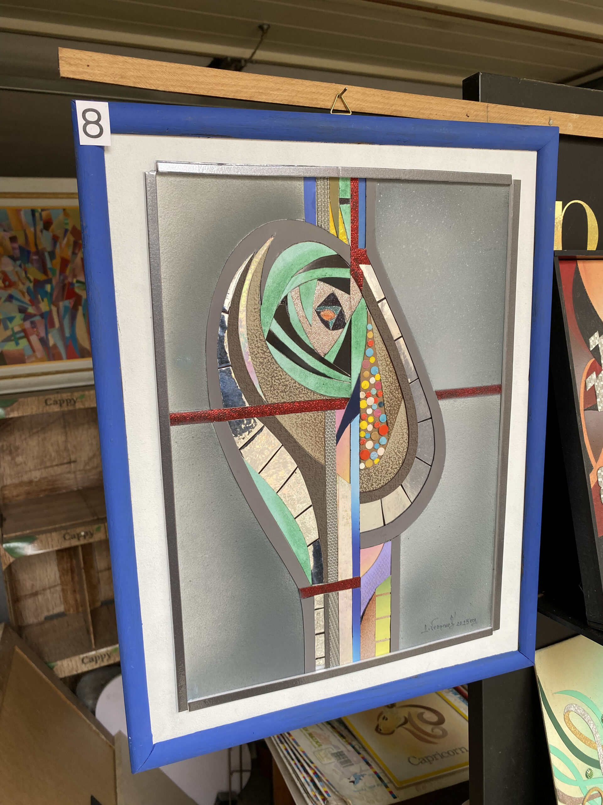 • Оригинал с авторски подпис; вертикален формат в синя рамка — готово за окачване.
