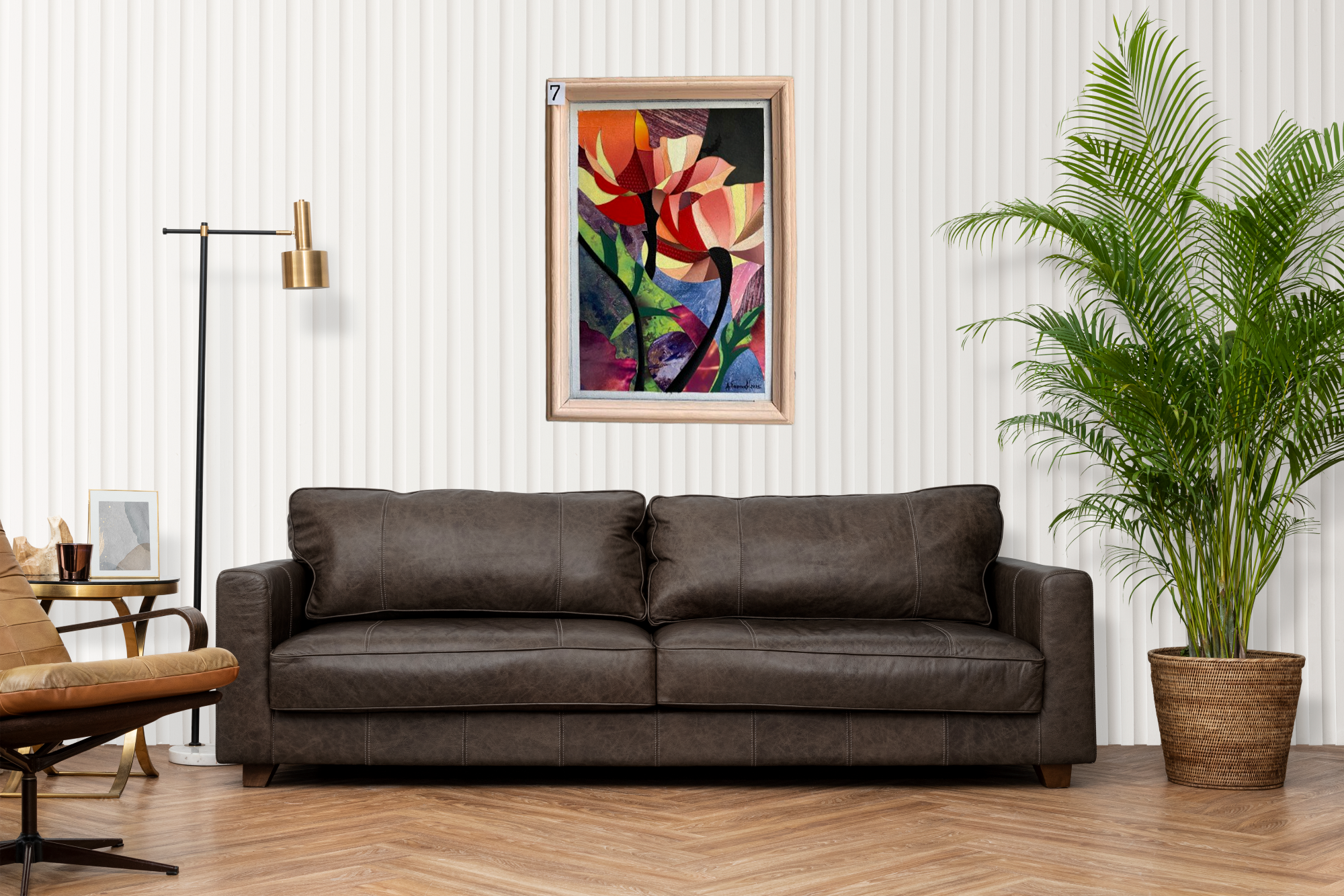 - Готово решение: с рамка — окачвате веднага; комбинира се лесно с неутрални стени, светло дърво, бетон и метал