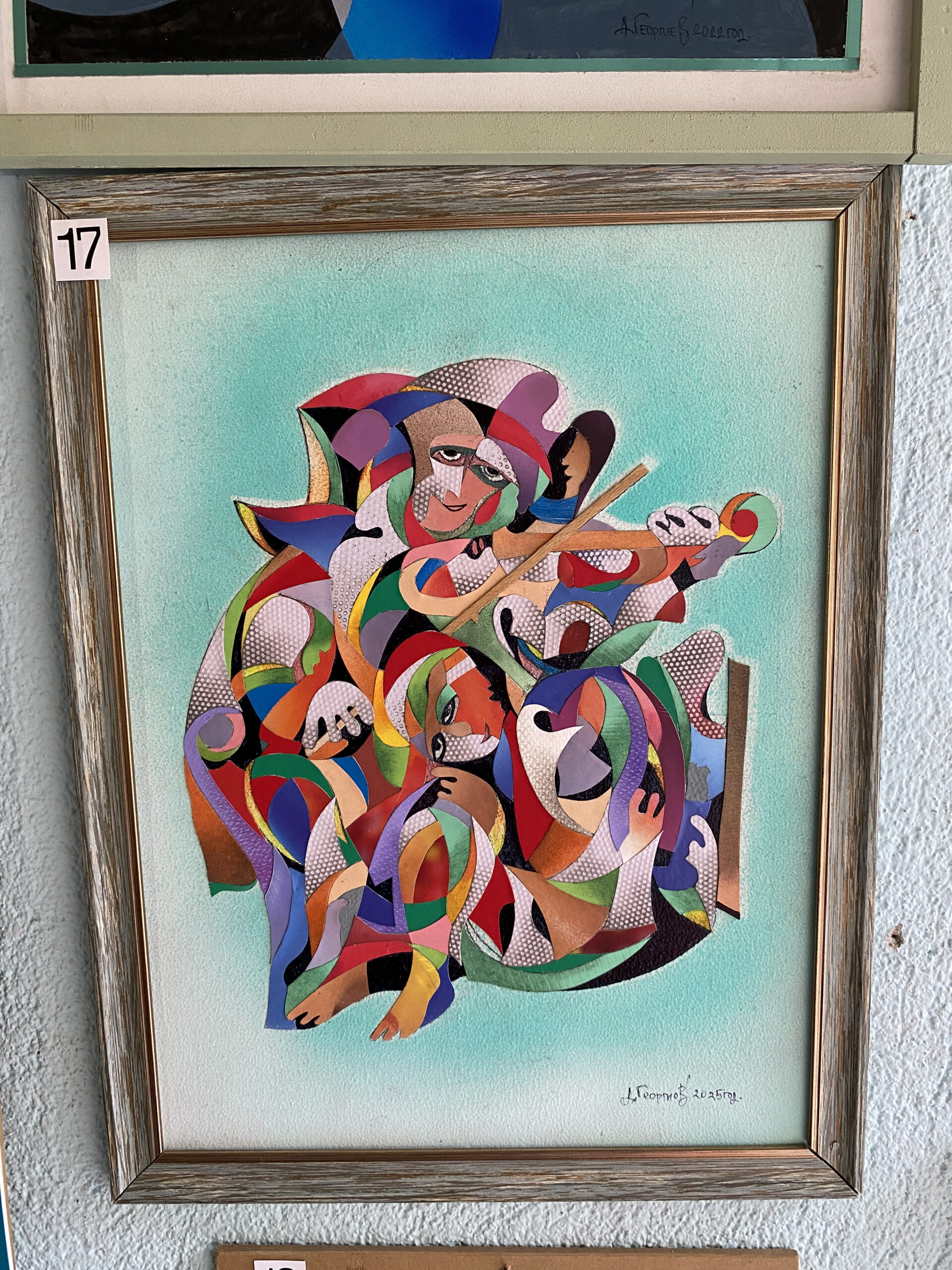 Многоликия цигулар — енергична кубистично‑абстрактна фигура на музикант.