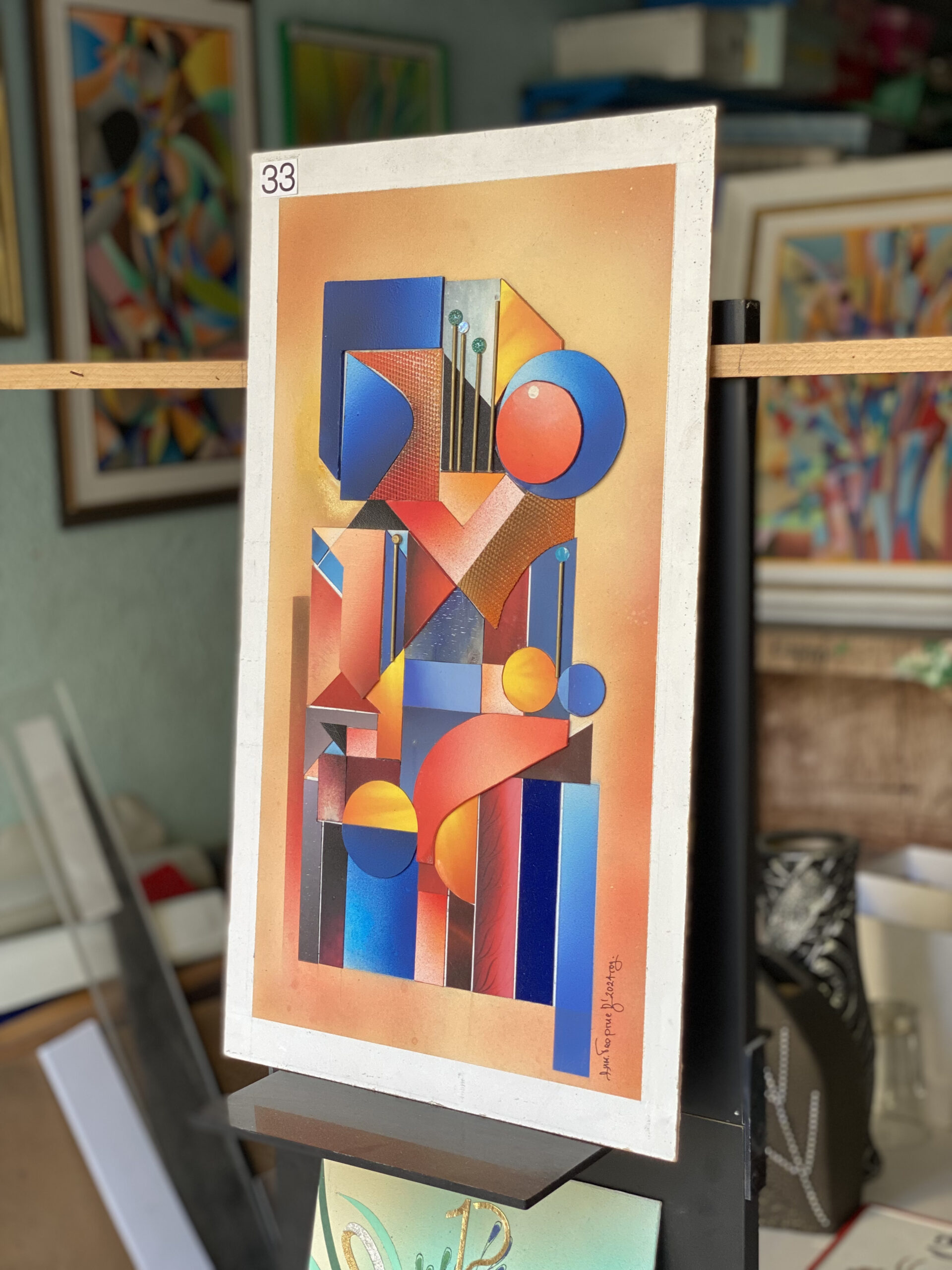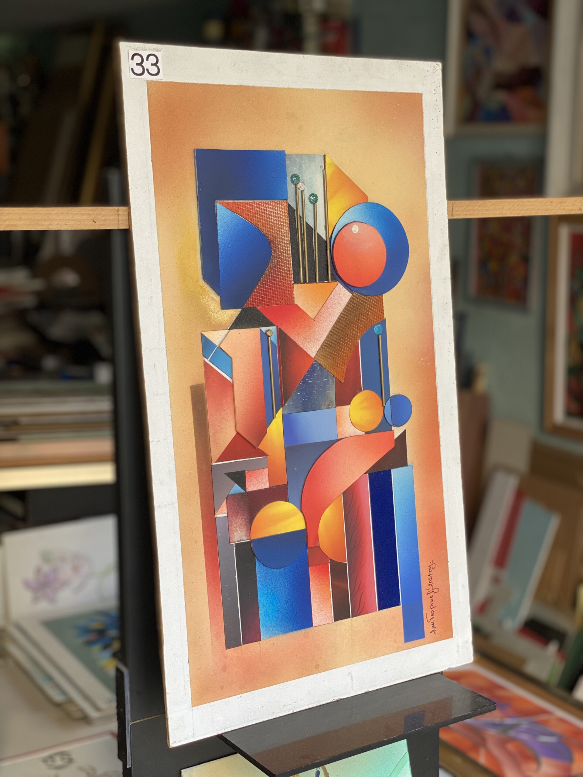 Техника: аерограф за копринени преливки, акрил за чистите полета, маскиране и текстурни зони за релеф и дълбочина; защитено с прозрачен лакОригинал с авторски подпис; вертикален формат. Произведението е без рамка — свобода за персонално рамкиране; при интерес съдействаме за избор на подходяща рамка от художника.